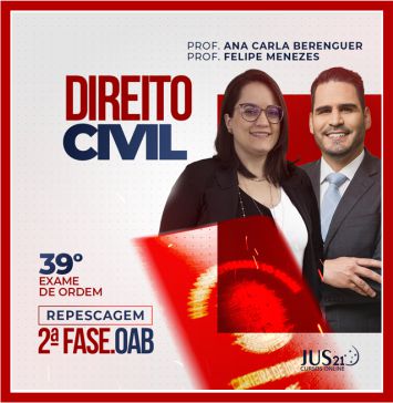 O curso de DIREITO CIVIL para a Repescagem da 2ª fase do 39º Exame de Ordem, coordenado pelo professor FELIPE MENEZES em parceria com o professor ANA CARLA BERENGUER, objetiva preparar os alunos INTENSAMENTE até o dia da prova, com um volume de conteúdo e ferramentas aptos a deixar os candidatos prontos para qualquer desafio que a FGV possa apresentar.